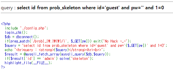 [skeleton] https://los.rubiya.kr/chall/skeleton_a857a5ab24431d6fb4a00577dac0f39c.php