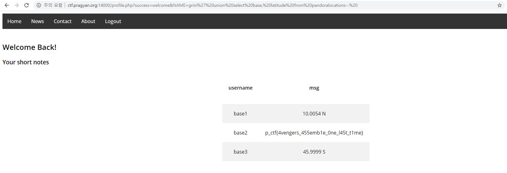 [pandorausers] password, username알아낸 테이블과 컬럼을 이용하여 값을 출력해 보았다.