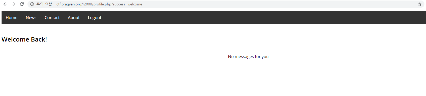회원가입 후 로그인 해보면 Pandora 문제와 같이 profile.php 페이지로 success 파라미터와 함께 접근된다.