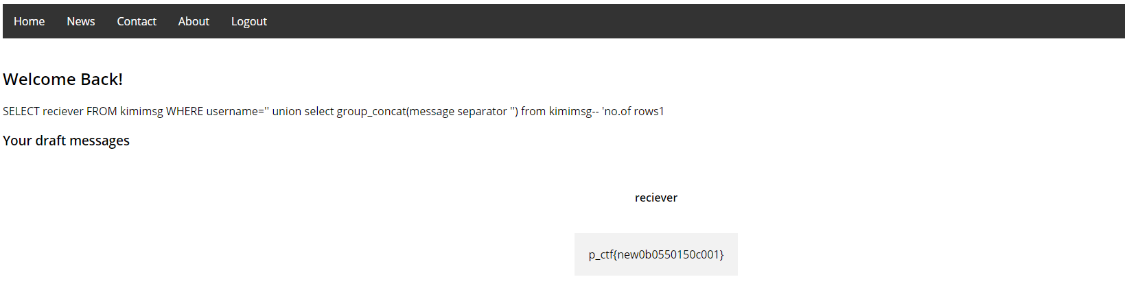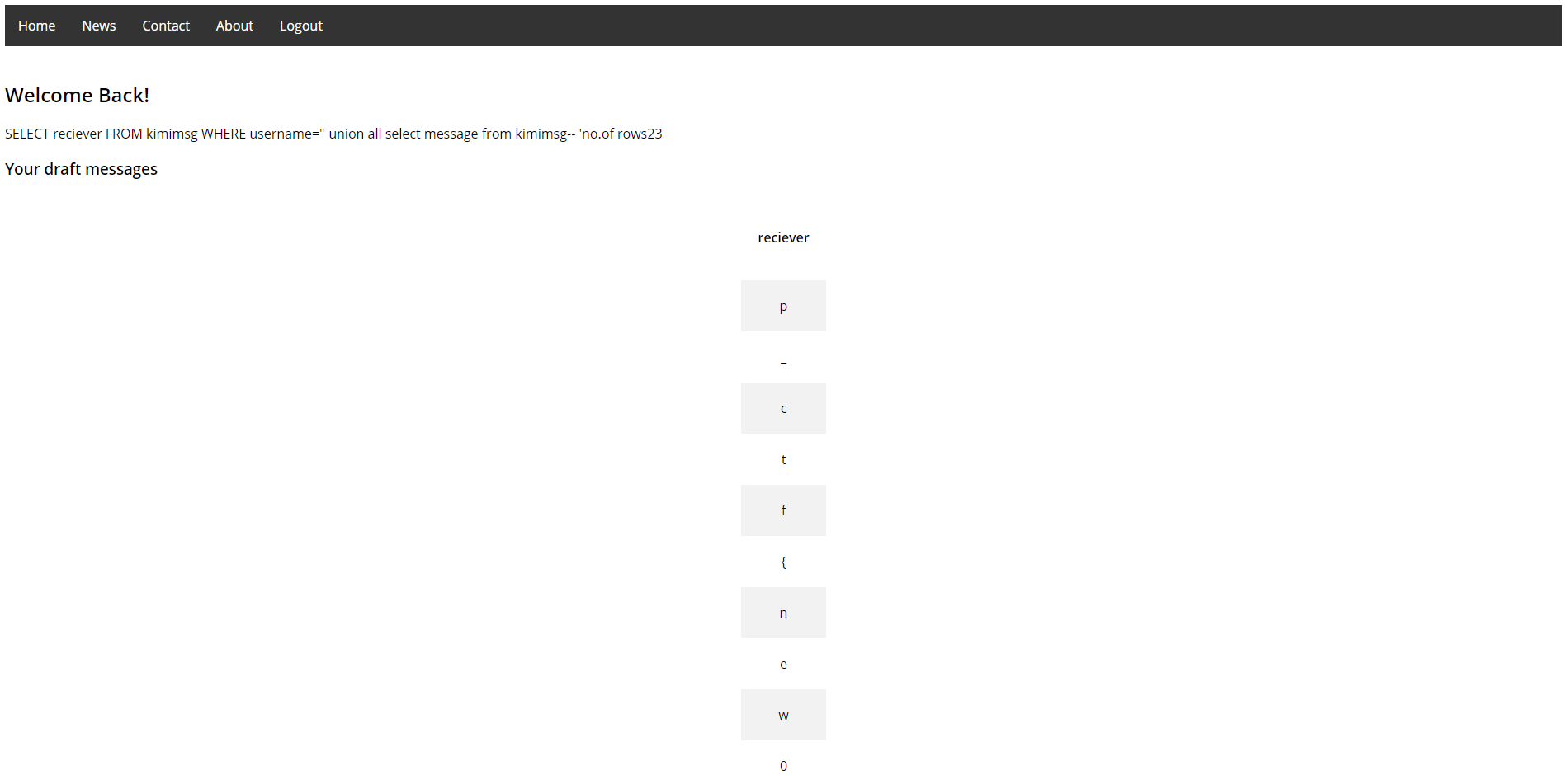 kimimsg 테이블의 message 컬럼의 값을 출력하면 flag 값인 것 처럼 출력된다.