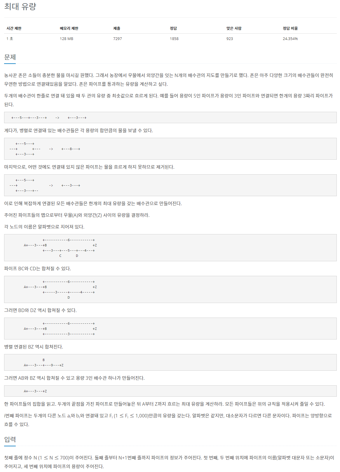 [최대 유량] https://www.acmicpc.net/problem/6086