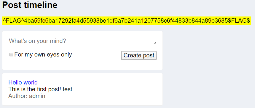 user_id를 3이외의 값으로 변경하면 해당 유저의 권한으로 글을 작성할 수 있고, Flag가 주어진다.