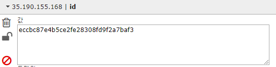 cookie 값을 살펴보니 id라는 이름의 쿠키가 32글자의 임의의 문자열로 설정되어 있다.