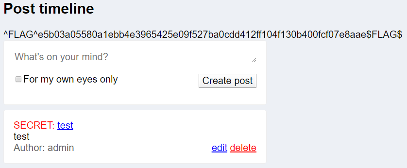 admin의 계정을 탈취하여 admin의 글을 수정, 삭제할 수 있고 Flag가 주어진다.