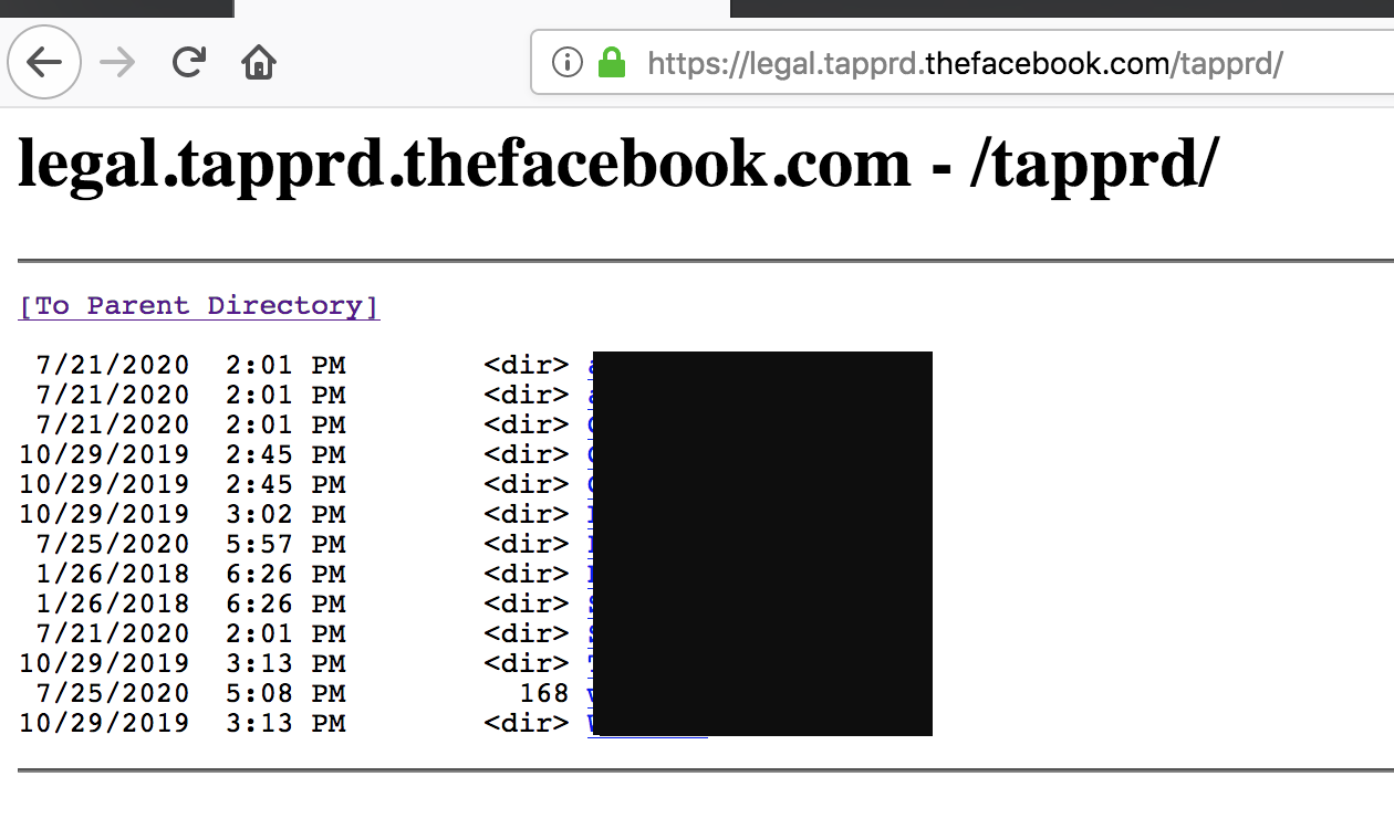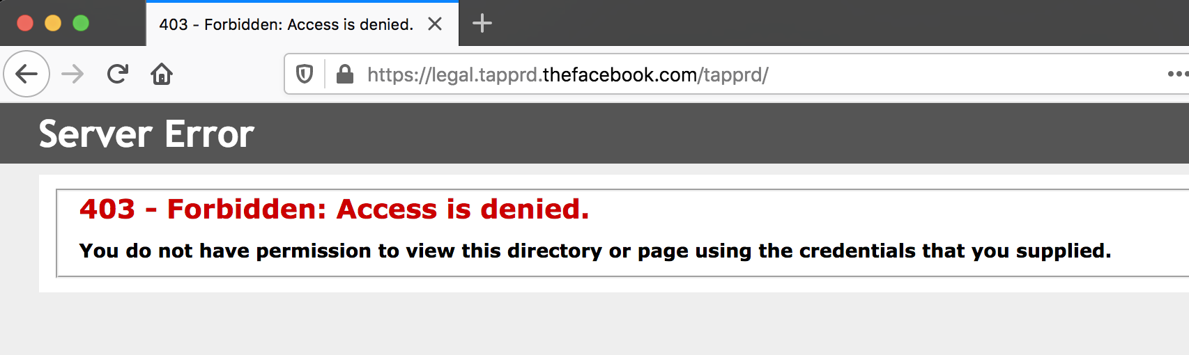 Burp를 이용하여 HTTP 요청을 보내는 동시에 Firefox에서 http://legal.tapprd.thefacebook.com/tapprd/ 페이지를 열었다. 그랬더니 403 에러는 없이 디렉토리 리스트를 얻었다.