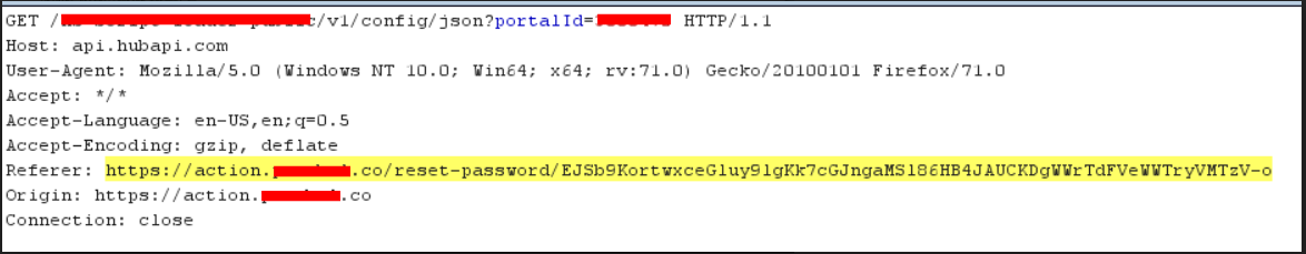 5. 비밀번호 재설정 링크가 토큰을 포함하고 있고 Host가 Third Party 웹 사이트인 경우 취약하다.해당 방법을 통해 가로챈 Request는 아래와 같다. Request를 보면 비밀번호 재설정 링크에 토큰을 포함하고 있고, Host가 다르기 때문에 취약한 것으로 판단할 수 있다.