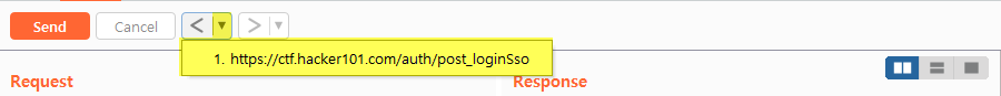 각 Repeater tab은 요청에 대한 기록을 유지하므로 < / >를 이용하여 전/후의 요청 및 응답을 확인할 수 있다.