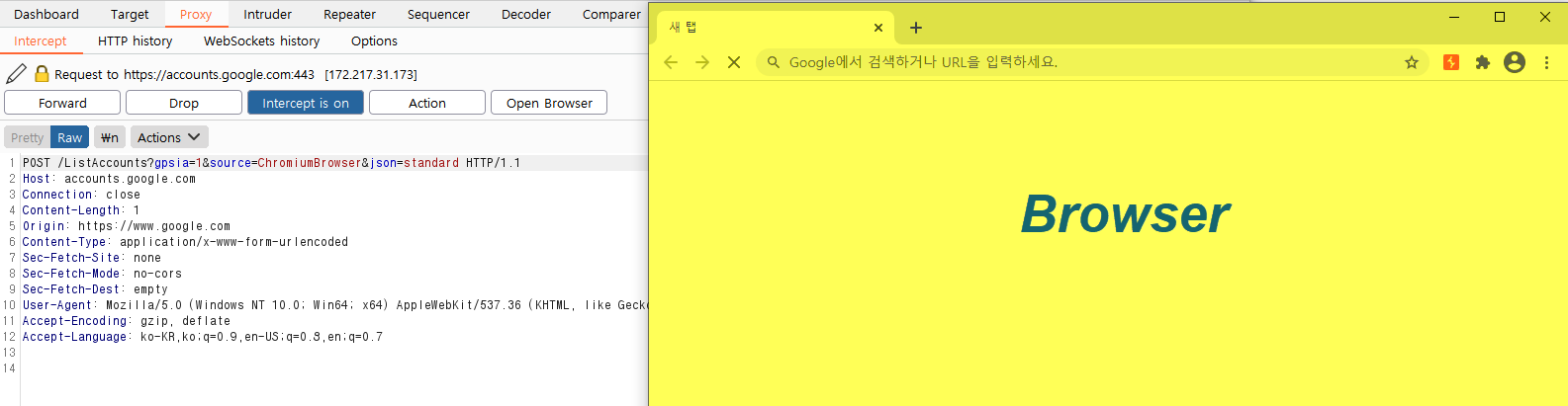 해당 브라우저를 이용하면 별도의 프록시 설정 없이 패킷을 잡을 수 있다.
