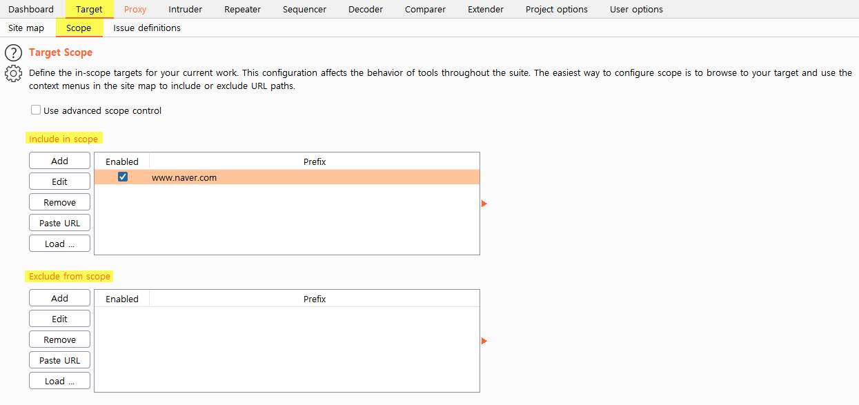 공격하려는 대상 범위를 설정한 후 아래와 같이 Proxy에서 설정해주면,