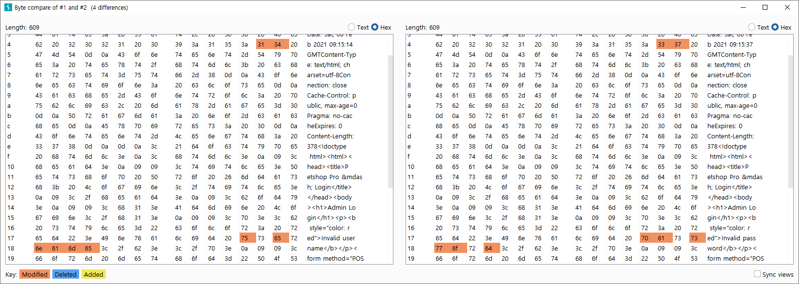 비교하고자 하는 값(Request/Reponse)을 복사 + 붙여넣기 하거나,