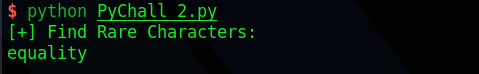import requests import string def getData(): url = "http://www.pythonchallenge.com/pc/def/ocr.html" r = requests.get(url) s = r.text.find("%%$@_$^__#)") data = r.text[s:-6] return data if __name__ == "__main__": data = getData() result = "" for i in data: if i in string.ascii_letters: result += i print("[+] Find Rare Characters:") print(result)[실행 결과]