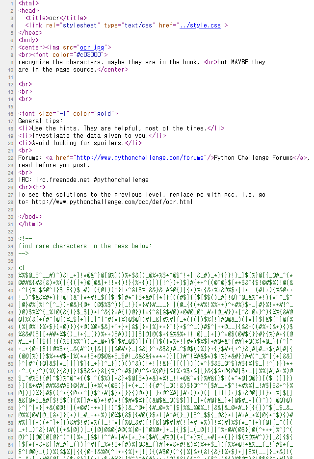 [Python Challenge] ocr #2Wargame/Python Challenge 2021. 1. 27. 16:55