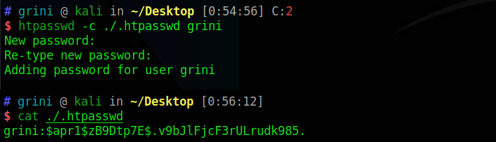 수동으로 .htpasswd 파일을 생성하여 출력된 값을 형식에 맞게 삽입해준다.