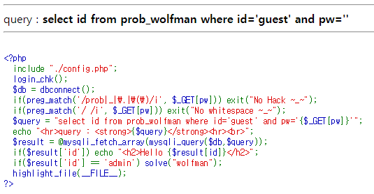[LOS] wolfmanWargame/Lord of SQLInjection 2019. 7. 5. 00:02